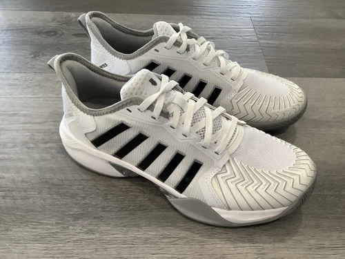 Elevate your pickleball game with these K-Swiss Supreme sneakers in white and black, size 9 for men. Designed with both style and performance in mind, these athletic shoes are perfect for any avid player. The brand speaks for itself, with a reputation for high-quality and durable products. Enhance your game and style with these top-of-the-line sneakers.