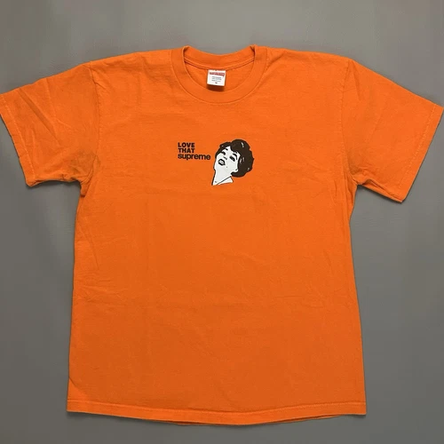 Elevate your casual wardrobe with the Supreme “Love That Supreme” Orange Shirt in size Medium. A vibrant orange hue sets the stage for this staple piece, offering a refreshing pop of color that’s sure to turn heads. Crafted with the quality and attention to detail that Supreme is known for, this T-shirt embodies a perfect blend of style and comfort.