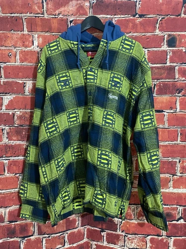 Supreme Hooded Shadow Plaid Shirt Navy Size Medium Brand New