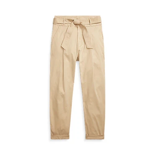 Rendered in stretch-infused cotton twill, these pants are defined by a waist-accentuating self belt and crisp pleats, cuffed leg hem. Ralph lauren partners with better cotton to improve cotton farming globally. US Women's Size: 10 NWT - New With Tags Straight Fit 28" Inseam - to cuff 14" Front Rise 7.5" Leg opening 18" Across Waist Band 97% Cotton 3% Elastane Machine Washable Original Price: