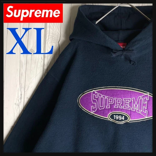 Supreme Embroidered Logo Brushed Front Hoodie Xl Navy XL(LL)