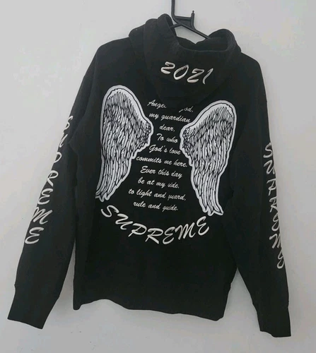 Embroidered logos on sleeves with embroidered graphics on hood and back.