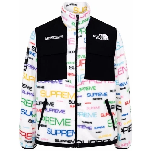 This white Tech fleece jacket is part of the AW21 collection, and it stands out thanks to the multicoloured logos all over.